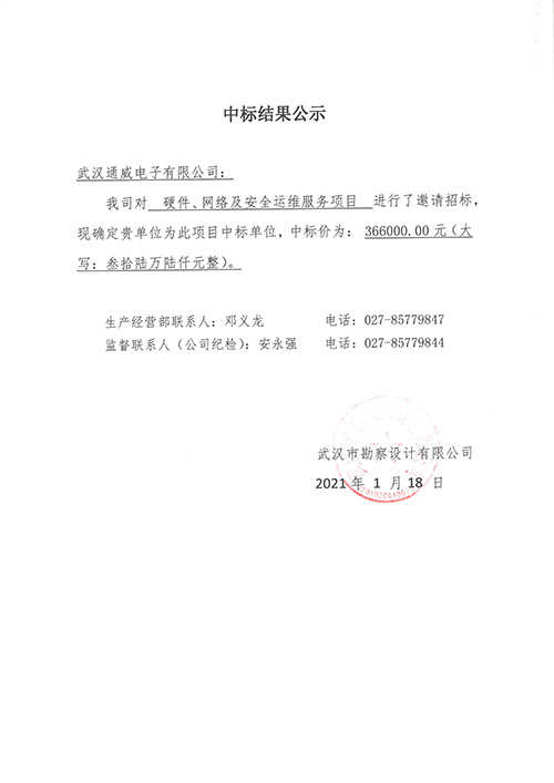 武漢市勘察設(shè)計有限公司硬件、網(wǎng)絡(luò)及安全運維服務(wù)項目中標結(jié)果公示