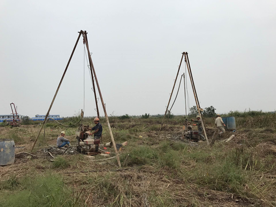 本工程勘探工作量大,任務(wù)重,勘察范圍基本為原始地貌,涉及大片灌木叢及大片藕塘,施工環(huán)境非常復(fù)雜,再加上臨近十一國慶假日,鉆探工作人員心思有所松懈,種種困難給外業(yè)工作帶來了巨大挑戰(zhàn)。面對(duì)困難,項(xiàng)目成員積極開展協(xié)調(diào)工作,調(diào)配挖機(jī)快速清理場地解決進(jìn)場施工難題;公司專業(yè)總工對(duì)外業(yè)生產(chǎn)進(jìn)行現(xiàn)場技術(shù)指導(dǎo),為項(xiàng)目的順利開展提供了強(qiáng)有力的技術(shù)支撐;開工前對(duì)現(xiàn)場鉆探人員進(jìn)行了技術(shù)交底、環(huán)安教育及思想工作,節(jié)假日期間項(xiàng)目成員及鉆探人員堅(jiān)守崗位,加班加點(diǎn),保證外業(yè)進(jìn)度的同時(shí),也不懈怠安全生產(chǎn)及質(zhì)量把控,使得勘察工作有條不紊的進(jìn)行。