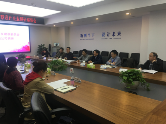 為全面了解武漢市勘察設(shè)計企業(yè)經(jīng)營狀況,切實掌握企業(yè)運行情況,更好的為企業(yè)發(fā)展服務(wù),3月16日下午,市城建委林琨副主任、設(shè)計處徐海清處長、設(shè)計之都發(fā)展中心(審查辦)胡華瑩副主任、海管辦劉婕科長、節(jié)能處明珊科長赴我司進(jìn)行了考察調(diào)研。市測繪院肖建華院長,公司廖建生董事長、施木俊總經(jīng)理及其他高管層、職能部門負(fù)責(zé)人參加了座談。