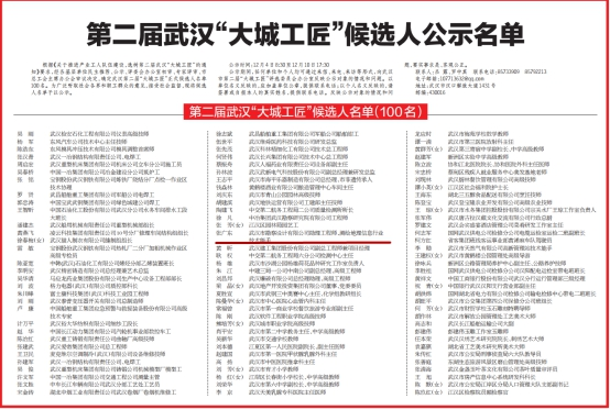 為了大力弘揚(yáng)“工匠精神”,厚植工匠文化,進(jìn)一步激發(fā)廣大職工凝心聚力、拼搏趕超的工作干勁,市總工會(huì)于2018年8月起在全市范圍內(nèi)開展了第二屆武漢“大城工匠”選樹工作。評(píng)選活動(dòng)歷時(shí)4個(gè)月,經(jīng)各基層單位民主推薦、公示、評(píng)委會(huì)辦公室初審、專家評(píng)審、市總工會(huì)主席辦公會(huì)審議決定,確定了武漢第二屆“大城工匠”正式候選人名單100名,并于12月5日在長(zhǎng)江日?qǐng)?bào)第五版正式登報(bào)公示。我公司測(cè)繪工程公司總經(jīng)理助理、全國(guó)測(cè)繪地理信息行業(yè)技術(shù)能手張廣東同志榮獲第二屆武漢“大城工匠”。