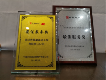 2019年3月15日,中海地產(chǎn)武漢公司舉辦了“2019年度中海地產(chǎn)武漢公司發(fā)展暨合作商交流會(huì)”,武漢市昌廈基礎(chǔ)工程有限責(zé)任公司繼2018年后再度榮獲中海地產(chǎn)“最佳服務(wù)獎(jiǎng)”,基礎(chǔ)工程公司總經(jīng)理洪興全代表上臺(tái)領(lǐng)獎(jiǎng)。我司是本次表彰交流大會(huì)中唯一基礎(chǔ)施工類獲獎(jiǎng)單位。