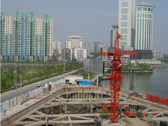 支護形式:采用鉆孔灌注樁+鋼筋混凝土支撐支護+粉噴樁止水+中深井降水。 工程特點:層數23~29層,緊鄰西湖,位于漢口繁華的金融一條街地段,有深厚淤泥質土,開挖深度7.0-9.0m,開挖面積10000m2。...
